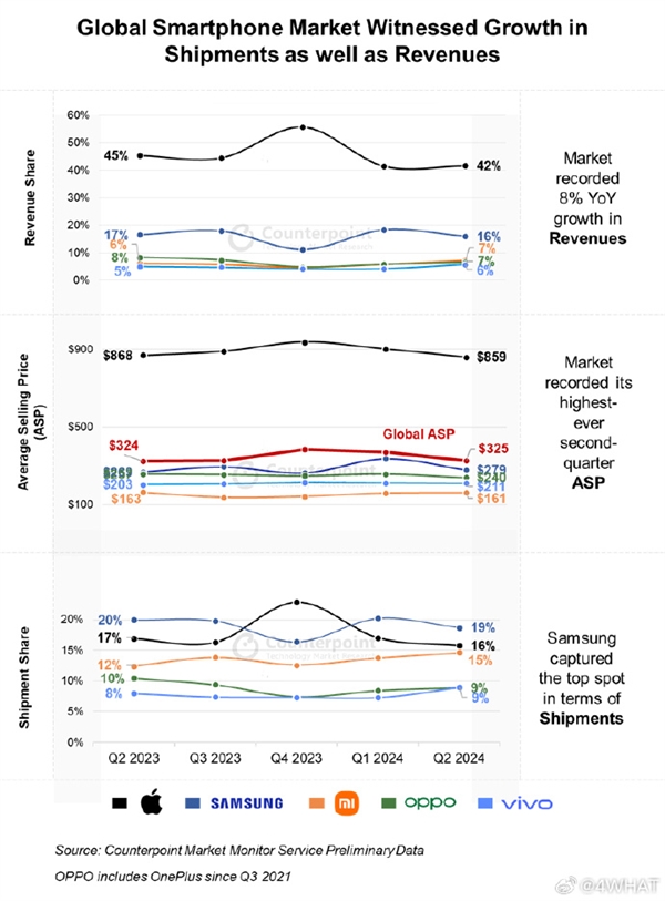 8月4日消息,近日市场调研机构Counterpoint晒出了今年全球Q2智能手机一些数据,其中苹果依然是这个圈子里的最大赢家。