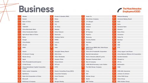“2020年商科学生心中的最具吸引力雇主Top20”排名:阿里、华为位居前两名快报