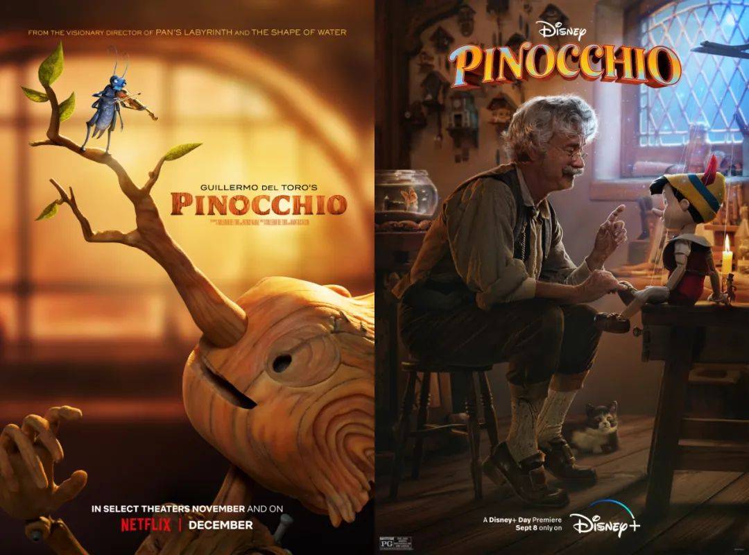两部电影分别由泽米基斯和吉尔莫·德尔·托罗两位大导演指导。前者几乎是延续了迪士尼一向的动改真作品风格,保守不出错也几乎看不到任何导演的个人风格,后者的片名便是《吉尔莫·德尔·托罗的匹诺曹》,足以看出两者的差异。