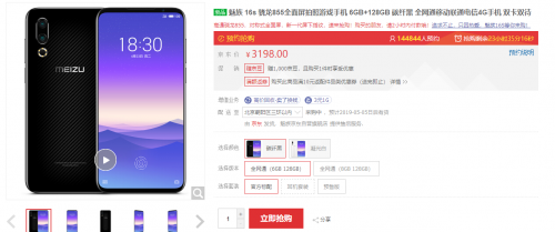 3198元起!魅族16s首销售罄:上午10点加开预售快报
