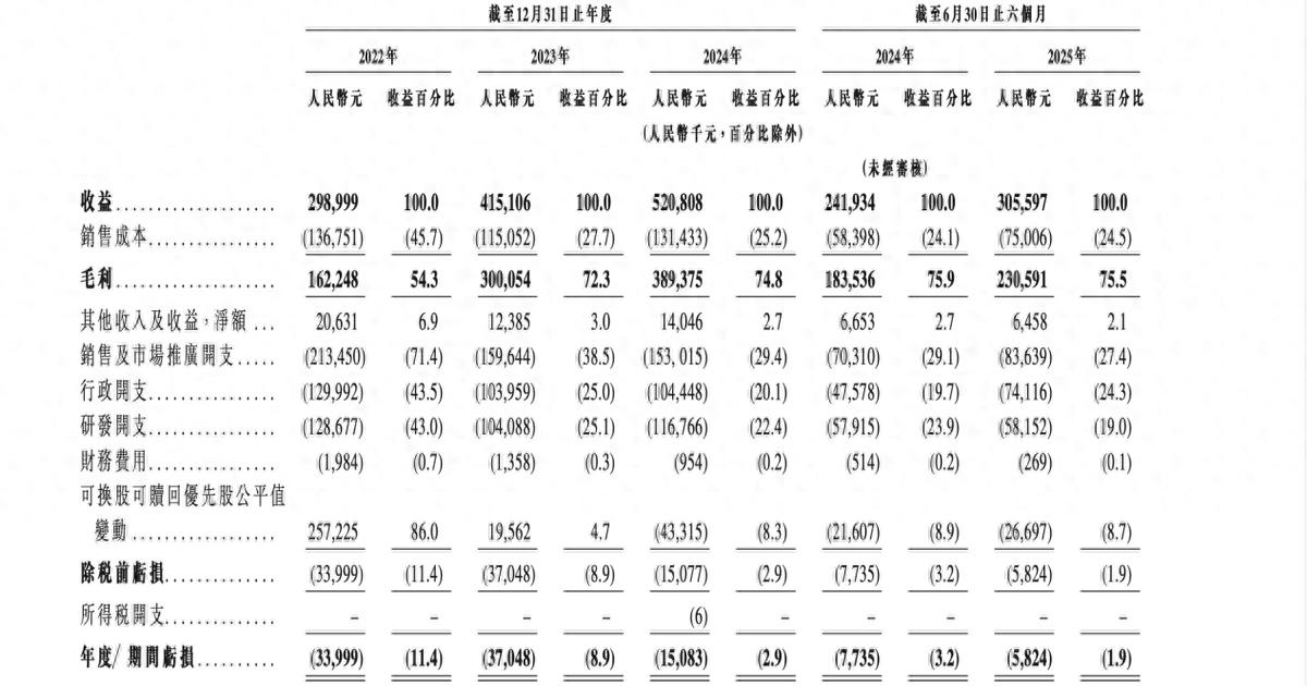 招股书数据显示,2022年、2023年、2024年以及至2024年、2025年前6个月,小鹅通的毛利率分别为54.3%、72.3%、74.8%、75.9%及75.5%。