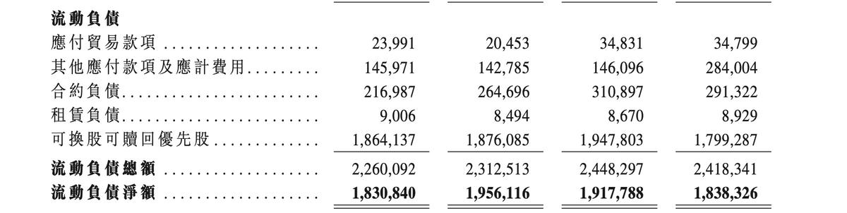 招股书数据显示,到2025年上半年,流动负债中,合同负债的占比似乎并不高,反倒是可换股可赎回优先股占比流动负债总额达到17.99亿,占比达到了74%。