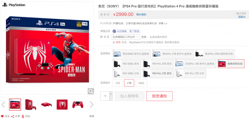 【TechWeb】索尼在去年12月21日在中国大陆地区发售了“PlayStation 4 Pro漫威蜘蛛侠限量珍藏版”,售价2999元人民币。这款设备在开卖后迅速售罄,让没有买到的朋友倍感遗憾。这款产品在今天终于进行了补货并再次开售。