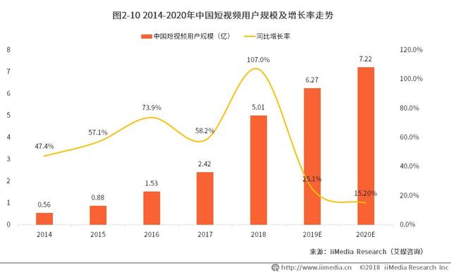 事实也的确如此,根据艾瑞统计分析的2014年到2020年中国短视频用户规模及增长率走势来看,行业野蛮生长的红利期已经逐渐式微,抖音也好,快手也罢,也是时候为将来做些打算了。