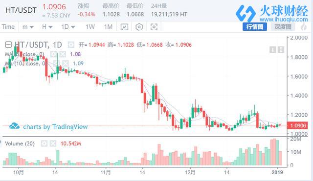 ht昨天逆势反弹了一波,再次验证1.0是具体强支撑的,可以继续持币,今日压力位1.2,支撑位1.0。