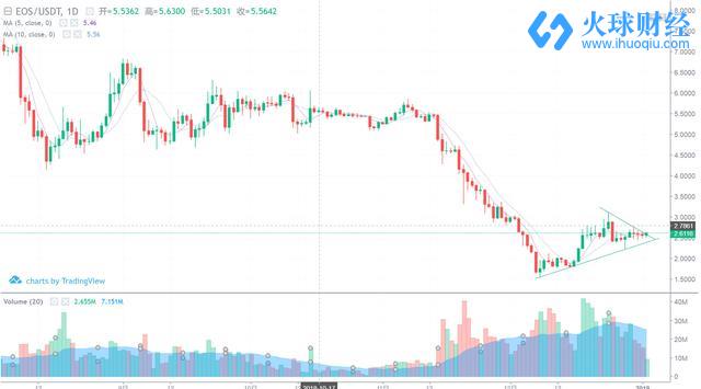 eos也走到了缩量调整的末期,等待大盘的方向吧,今日压力位2.8,支撑位2.4。