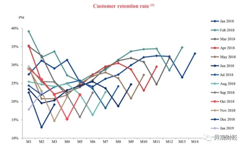 招股书显示,瑞幸咖啡2018年客户复购率高达54%。瑞幸招股书披露了2018年2月起的各个月的客户留存率,这体现了客户的忠诚度及行为模式。