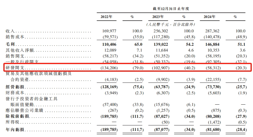 然而,从财务报表看,这家技术底子厚的公司,在最近三年的开支结构上,正在出现值得关注的转向。2022年,五一视界将收入的79%投入研发,达到1.34亿元,堪称重研发、轻市场的典型,2023年的研发投入约1.03亿元,占比降至40.2%。