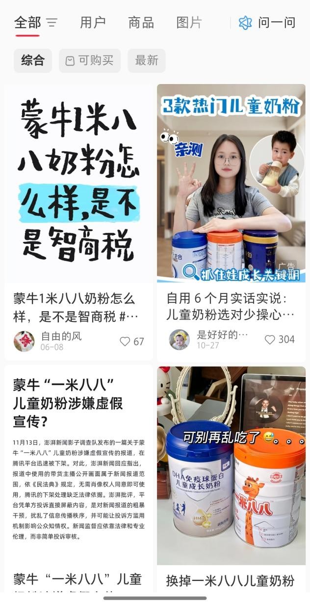 近期,多家媒体报道称,蒙牛“一米八八”儿童奶粉主播在直播间暗示饮用该奶粉能让孩子长高,但产品宣传中所引用的研究报告数据存在引用不当问题,也引起了网友的不满。