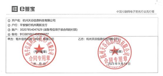 去年12月,e签宝发布官方声明称:根据协议约定,牦牛科技平台用户的身份认证由牦牛科技完成并承担相应法律责任。