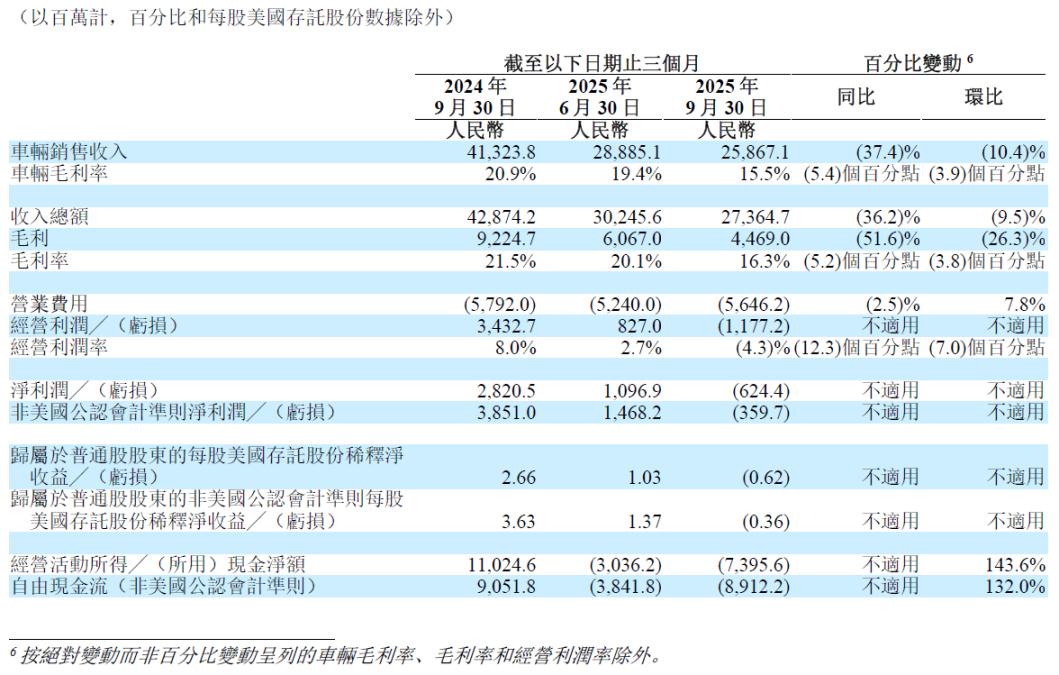 但是,出牌更快的理想,依然没能挽回业绩,甚至交出一份令人始料未及的三季报:营收273.65亿元,同比暴跌36.2%;经调整净亏损为3.60亿元,去年同期净利润为38.51亿元。