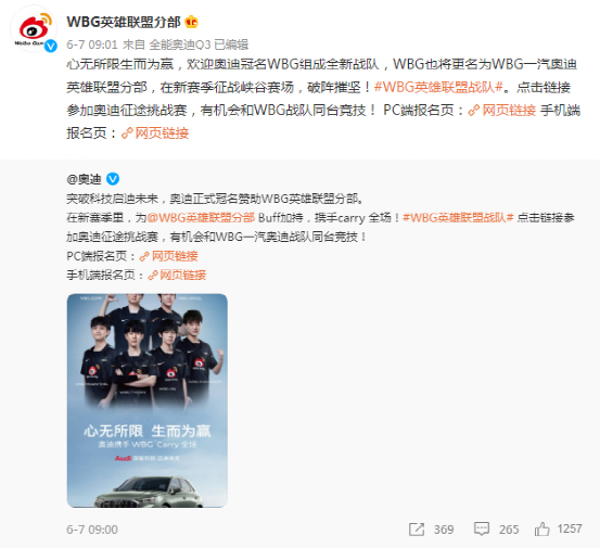 而赞助了赛事主办方的奔驰,不仅可以在平时比赛中间插入品牌广告,在比赛中还可以通过解说口播增加品牌露出,梅赛德斯奔驰还是EDG战队冠军戒指的设计方。有些车企与战队的合作更深,例如韩国LCK战队DWG获得起亚的投资后,改名为DK(DWG KIA),中国LPL赛区WBG战队全称也包含车企一汽奥迪。