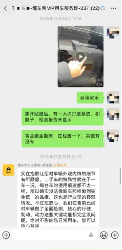 从懂车帝App自营商城购买二手车,消费者提出撕膜验车,平台拒绝并承诺检测报告深度全面。消费者提车后撕膜,才发现3个车门均有大面积掉漆,遂反馈至平台。懂车帝组建了一个20多人的售后服务群,却无一人解决问题。
