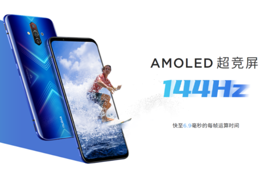 比如说在机身正面,努比亚Play不仅理所当然的没有跟风“打孔屏”,而是以极致的窄边框工艺与超小型的1200万像素前摄,实现了完整无缺的6.65英寸大尺寸全面屏观感。更为重要的是,这是一块纯平且具备144Hz超高刷新率和240Hz触控报点率、采用AMOLED材质,并支持屏下指纹识别功能的“超竞屏”。