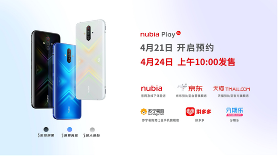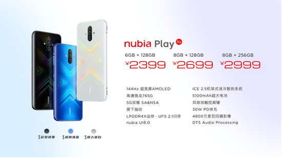 当然,优秀的产品理应被更多消费者所触及,因此努比亚Play 5G手机本次的定价同样也极具诚意。作为同类机型中唯一拥有144Hz高刷新率屏幕,唯一拥有AMOLED材质,唯一拥有5100mAh超大电池、唯一拥有屏下指纹、唯一拥有双触控游戏肩键、唯一拥有金属中框的品质之作,其6+128GB版本售价仅为2399元、8+128GB售价是2699元、8+256GB售价则为2999元。将自4月21日发布会后开启预约活动,并在4月24日上午10点,在努比亚官网、京东努比亚自营旗舰店、天猫努比亚官方旗舰店、苏宁易购努比亚手机旗舰店、拼多多,以及分期乐正式开售。