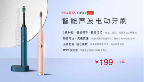 为了让更多人享受到科技所带来的健康生活,此次nubia neo小新系列的产品价格也同样极具吸引力。比如智能声波电动牙刷的售价仅为199元,智能速干牙刷消毒器仅需179元(5月开启京东众筹),而两者的套装版本更是只需369元即可入手。