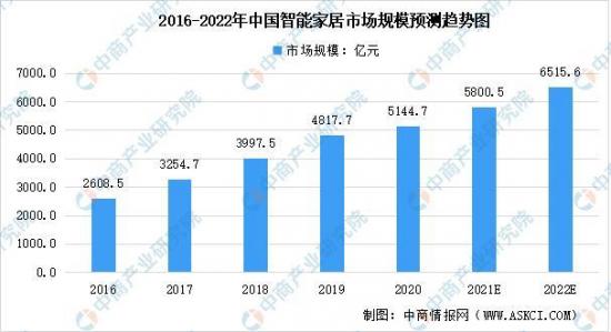早些年,智能家居在外界眼中仅是“概念”。确实,受技术制约,彼时市场尚未成型,开发者寥寥无几。可现在呢?中国已是全球最大的智能家居市场消费国,2016-2020年市场规模由2608.5亿元增至5144.7亿元,年均复合增长率为18.51%。中商产业研究院预测,2022年市场规模可达6515.6亿元。
