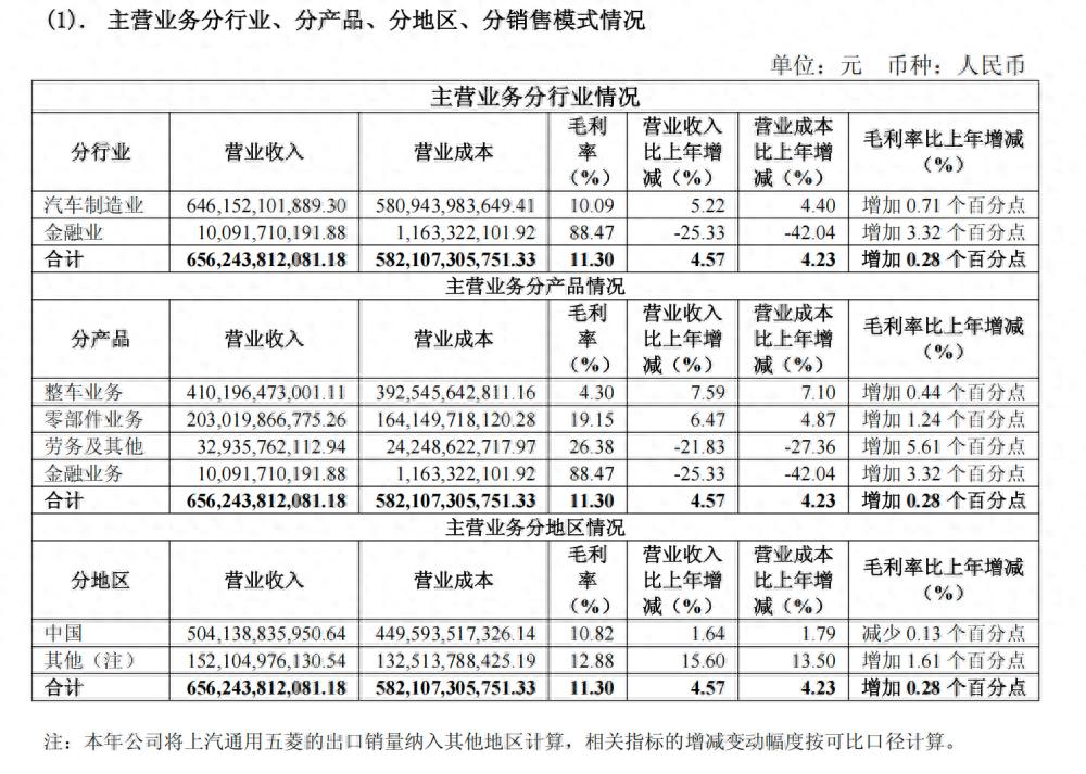 上汽集团主营业务业绩情况(图/财报截图)