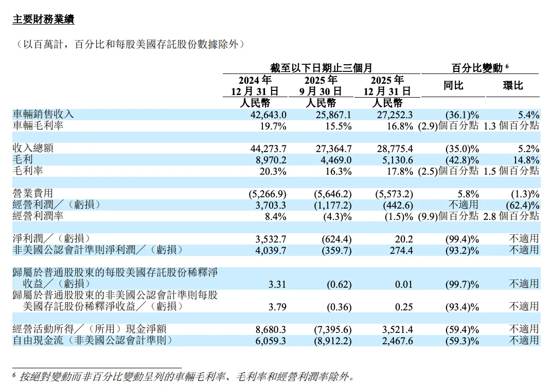 图源:理想汽车2025年Q4财报