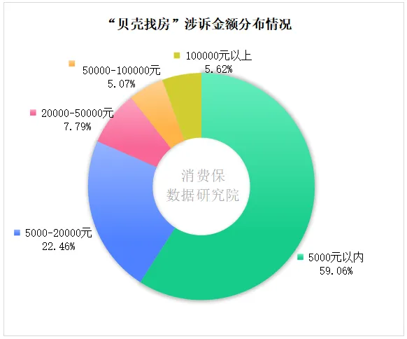 “贝壳找房”号称为三亿中国家庭提供包括二手房、新房、租赁、装修等全方位的高品质、高效率居住服务,由于业务的特殊性,与之相关的投诉涉诉金额相较高于其他行业。