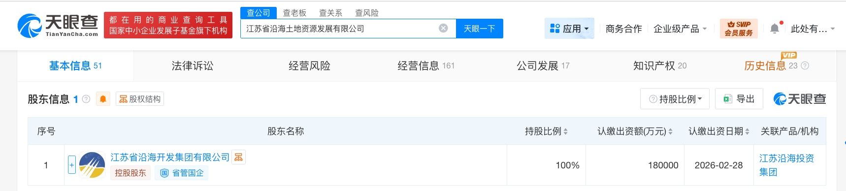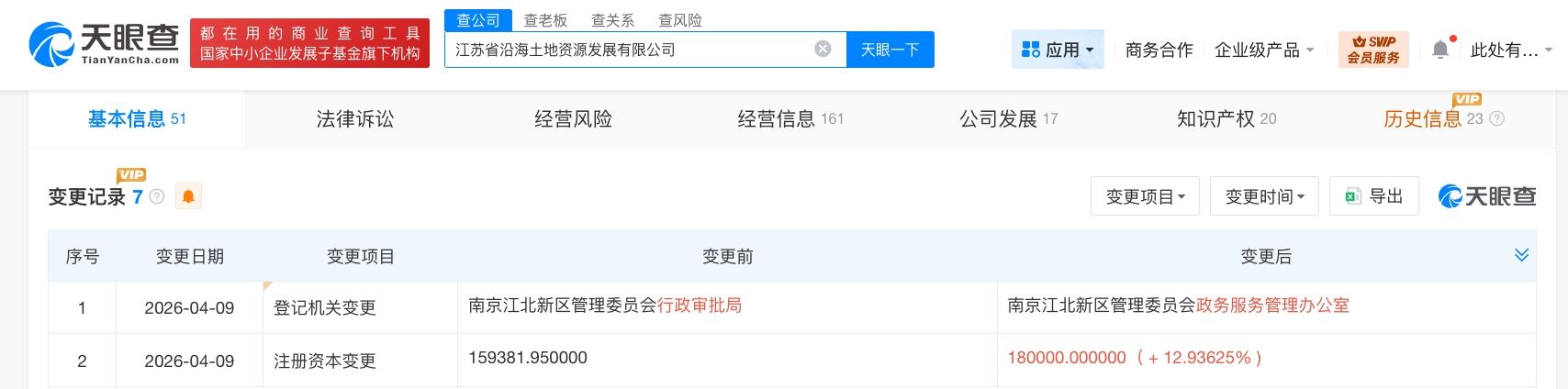 天眼查工商信息显示,近日,江苏省沿海土地资源发展有限公司发生工商变更,注册资本由约15.94亿人民币增至18亿人民币,增幅约13%。