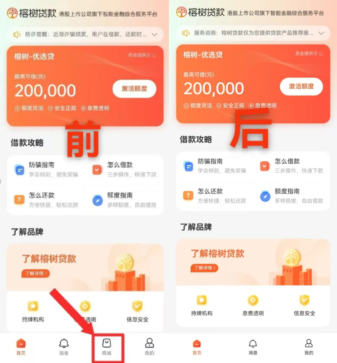 不过,在分期商城模式引起广泛争议后,2月下旬,已有地方相关部门向所在区域内的机构下发“现金贷+分期商城+会员费”模式的风险提示与整改要求。笔者于3月5日登录榕树贷款APP,发现该APP已无分期商城相关板块。