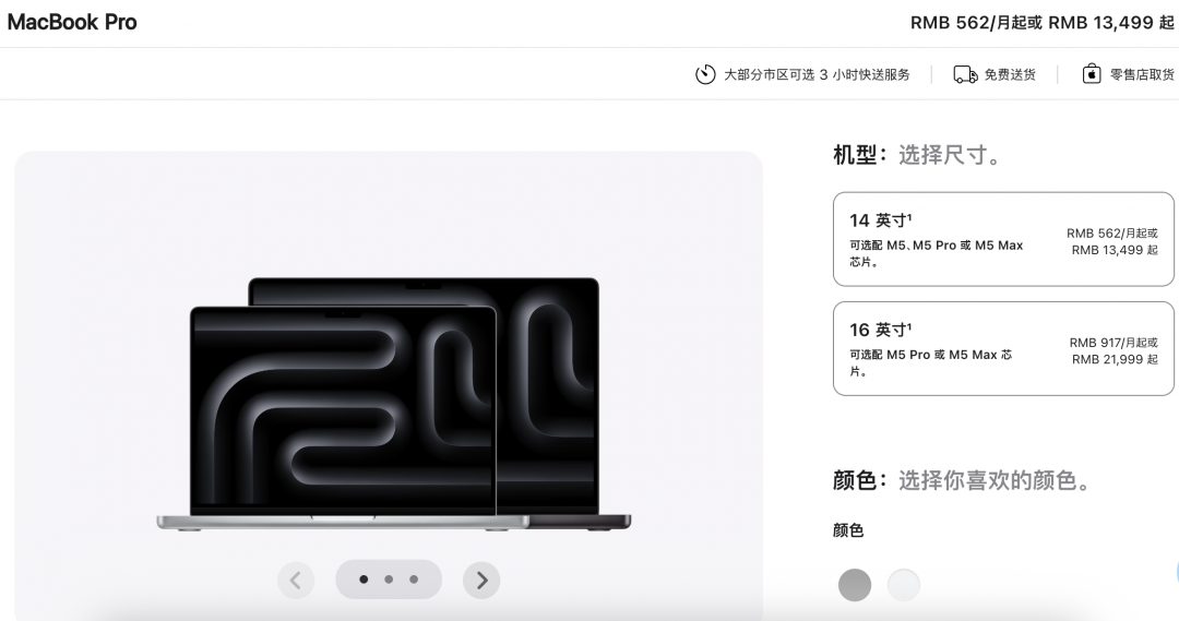 高端M5 Max芯片机型中,14英寸起售价涨至3599美元,16英寸起售价从3499美元涨至3899美元,涨幅约11.5%,上涨400美元。