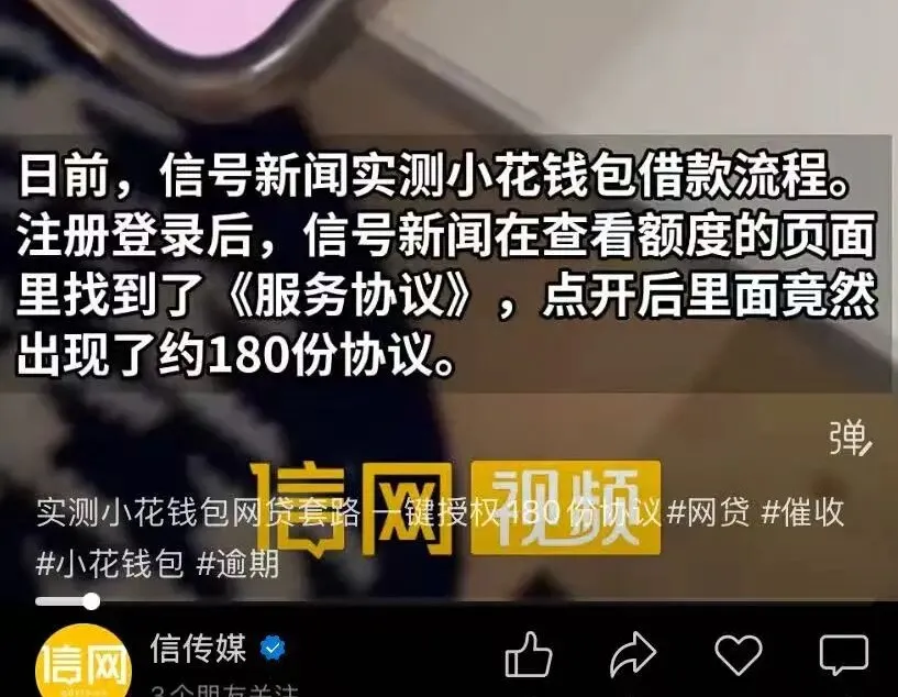 更可怕的是其协议陷阱,有媒体测试,在小花钱包的一次授权中,竟隐藏着多达180份涉及不同贷款平台、担保机构的网贷协议,用户根本无从知晓自己的钱究竟是从哪贷的及个人信息被共享给了多少家机构。用户的知情权和选择权被彻底剥夺,使整个借贷过程沦为一场暗箱操作。