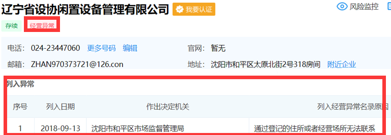 据公开信息显示,辽宁省设协闲置设备管理有限公司从2018年9月失联至今。