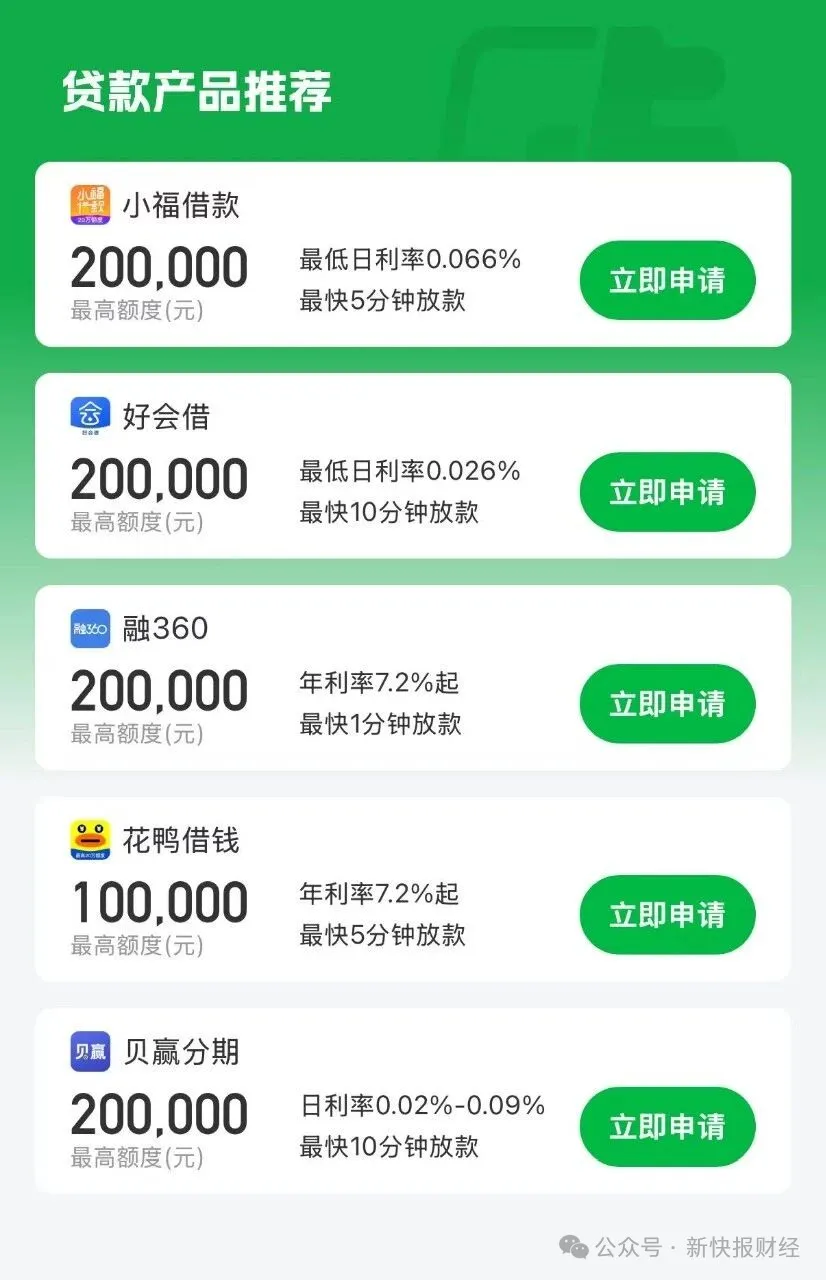 在导流业务中,维信金科为人品借款、小薇钱包、花鸭借钱、融360等贷超产品导流,其中部分产品定价较高。比如,维信卡卡贷推荐的小福借款,最低日利率0.066%,折合年利率最低约24%。