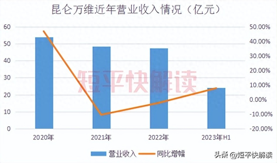 据短平快解读了解,今年上半年,昆仑万维营业收入同比增长7.81%至24.25亿元,暂时扭转营收下滑颓势,但归母净利润继续大幅度下滑,同比骤降44.31%至3.58亿元。