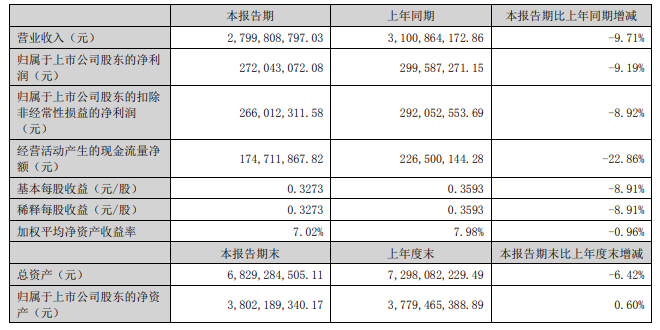 2025年上半年,华帝股份营收净利双双下滑,公司实现营业收入28亿元,同比下降9.71%;归母净利润2.72亿元,同比下降9.19%;经营性现金流由去年同期的2.26亿元降至1.74亿元,同比下降22.86%。
