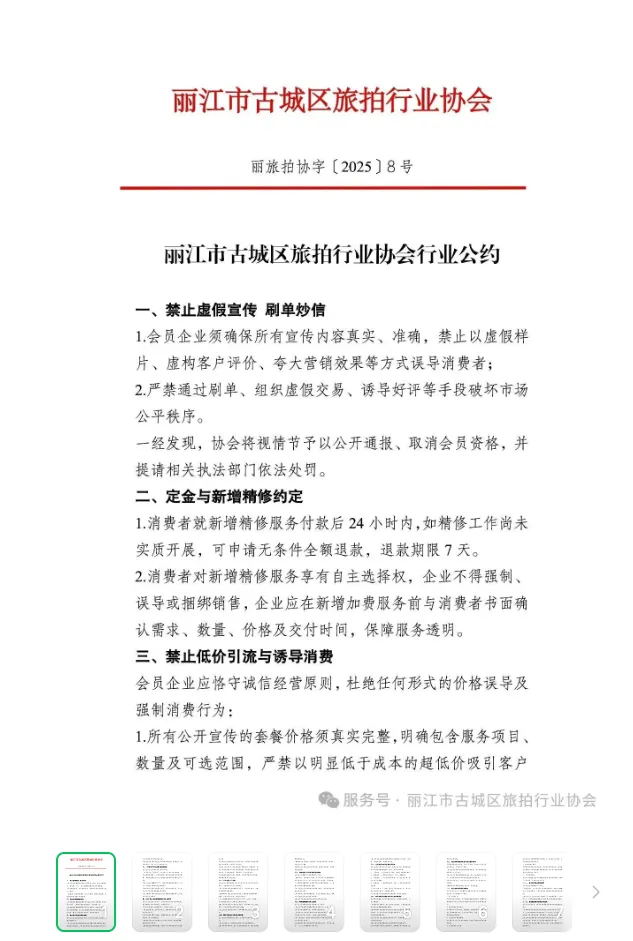 面对泛滥的负面内容,丽江当地行业协会和监管部门一方面向平台施压要求治理,另一方面也开始自查自纠,规范行业秩序,以堵住引发消费者不满的漏洞。