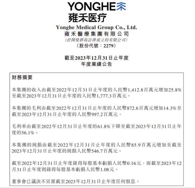 仅销售和营销费用一项,雍禾医疗在2023年就达到了10.44亿元,较上年同期增加了约2.78亿元,增幅36.2%;一般及行政开支则增加了1.17亿元,增幅45.5%;通俗来说去年雍禾医疗花在销售、广告营销以及人力、管理方面的成本较上年度增加了不少,所以导致全年度亏损加剧。