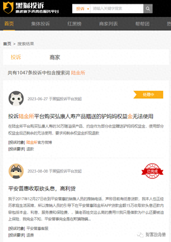 根据招股说明书显示,陆金所控股通过金融机构向投资者提供理财产品,包括资管计划、公募基金产品、私募投资基金产品及信托产品等。但令人大跌眼镜的是,经第三方投诉平台黑猫投诉网统计,与陆金所有关的投诉达400余条,平安普惠的投诉量则高达1.9万余,这还是在没有统计百度贴吧、知乎、小红书等社交平台的相关数据前提下,其中多条关于陆金所APP代销的理财产品的投诉,涉及问题主要为投资收益与宣传不符。