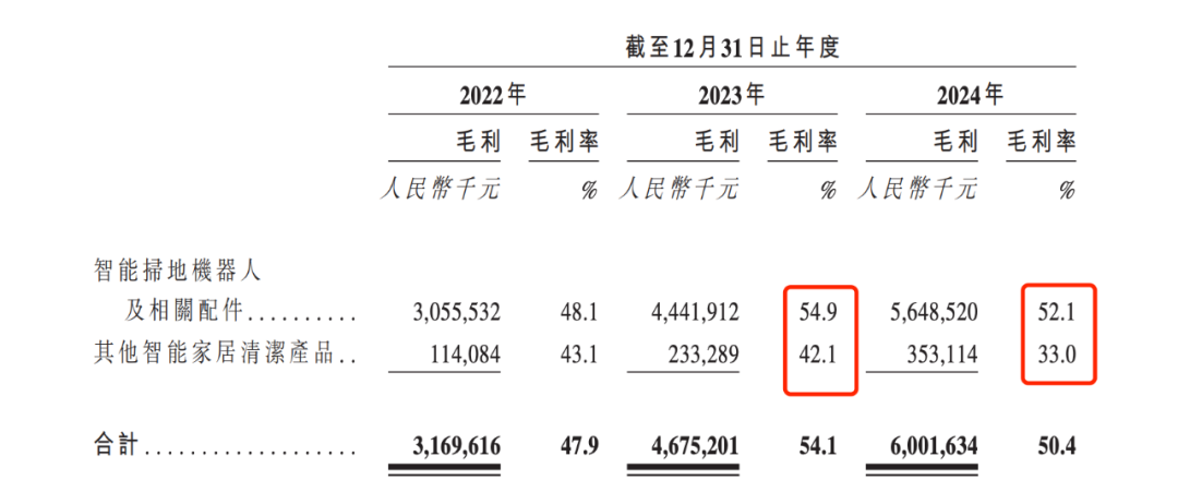 与此同时,公司的毛利率近年也在承压。其综合毛利率从2023年的54.1%降至2024年的50.4%。具体来看,核心产品扫地机器人及相关配件的毛利率从2023年的54.9%下降至2024年的52.1%。而“其他智能家居清洁产品”的毛利率更低,且降幅更大,从2023年的42.1%下降至2024年的33%。