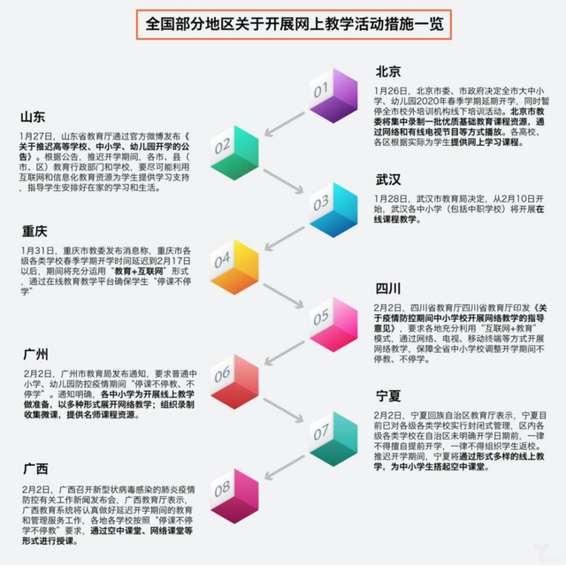 首先,从政策层面,随着各地中小学陆续发布推迟开学时间的信息,各地教育部门也已经启动在线教学计划。全国各地开始利用“云技术”搭建“在线课程”等举动,对在线教育技来说无疑是一个利好消息。