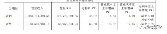 作为一家区域性的酒企,从数据可见金种子酒的的业务还90%是在省内,省外仅仅15%不到的份额占比。但是毛利率省外却高于省内15%。不过,省内省外的营收都是在下滑。说明其省外市场拓展很弱,虽然毛利高,但占比太少。省内市场份额大,但是毛利低。