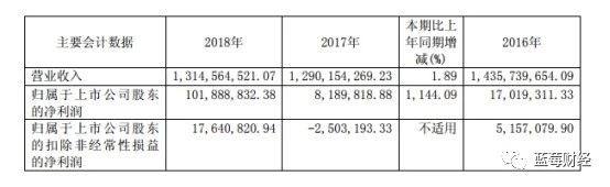 根据财报显示:公司实现营业总收入 1,314,564,521.07 元,同比增长 1.89% ,实现营业利润 129,433,462.50 元,较去年同期增长 419.97%,实现净利润 102,762,428.46 元,同比增长 1,021.72%,归属于上市公司股东的净利润为 101,888,832.38 元,较去年同期增长 1,144.09%, 扣除非经常损益后归属于上市公司股东的净利润 17,640,820.94 元。