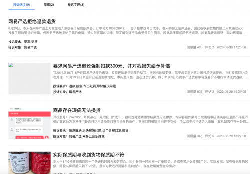 但是,随着平台的不断发展,网易严选也出现了很多电商行业的通病,比如实物和宣传不符,售后维权难等,这点也与其成立之初所标榜的服务渐行渐远,也让更多的消费者感受到了心里的落差。根据“电诉宝”收到用户维权案例显示,“网易严选”存在退换货难、商品质量、霸王条款等问题。