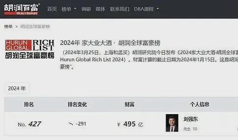 2024年,胡润富豪榜中,刘东强以495亿元身家位列富豪榜前列,其中不少是通过高利贷放贷赚取的,尤其是京东金条和京东白条等金融业务。