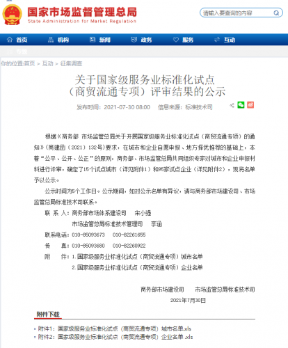 据了解,今年4月,国家商务部会同市场监管总局,决定在全国范围内开展商贸流通标准化专项试点,旨在推动各地区、行业、各类市场主体在标准制定、实施、应用方面开拓创新,树立一批标杆、总结提炼一批可复制推广的成功经验。