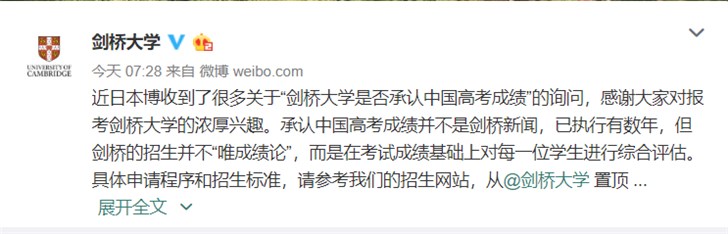 剑桥回应承认中国高考成绩:已经执行数年快报