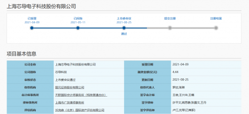 【TechWeb】8月26日消息,上海证券交易所科创板上市委员会2021年第58次审议会议于2021年8月25日上午召开,上海芯导电子科技股份有限公司(首发):符合发行条件、上市条件和信息披露要求。