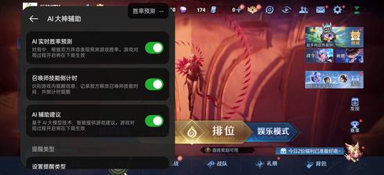此外,为了让更多人享受超神上分的乐趣,真我Neo7还提供了AI大神辅助2.0功能,可以为王者玩家提供AI胜率预测、对线技巧、策略引导三项核心功能,不仅可以智能提供阵容和出装建议,同时还能在对局中进行关键的信息提醒,提高玩家的游戏意识,还支持全队AI辅助等功能,进一步提升团队上分的胜率。还首发了召唤师技能倒计时功能,当监测到对方召唤师释放闪现、治疗等技能后,可智能辅助进行召唤师技能倒计时,让玩家可以时刻掌握对手的状态,瞄准时间出手开团。