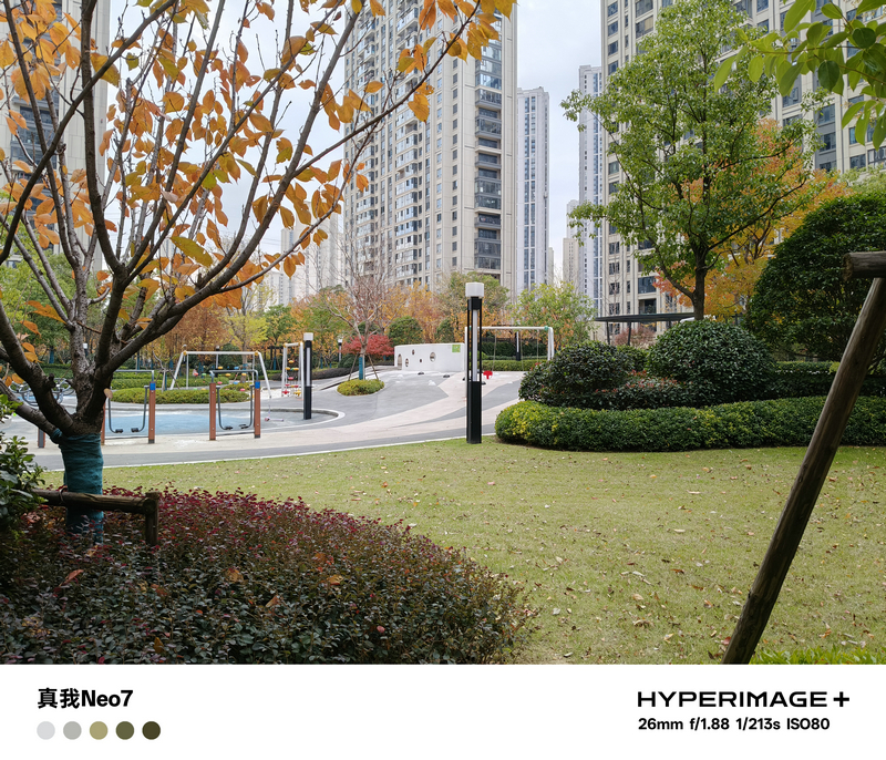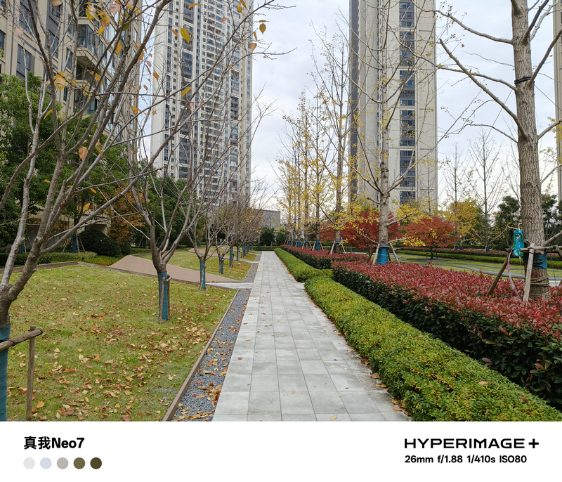 在白天的样张中,得益于5000万像素索尼防抖主摄的加持,真我Neo7所记录的画面在色彩、亮度等方面都有非常好的表现。实拍样张清晰锐利、纯净度高,配合超光影图像引擎算法,在大光比场景同样能够保留丰富细节,画质更优异色彩更真实,无论是建筑还是树木花草的颜色都很讨好眼球。