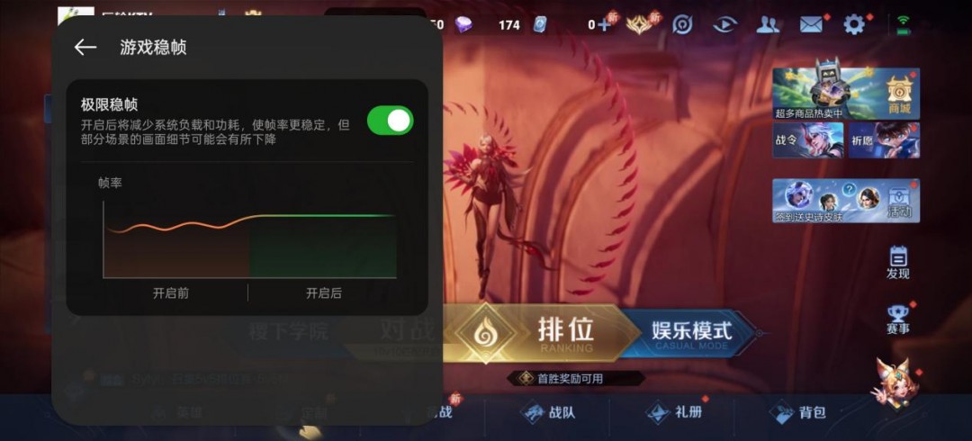 首先在《王者荣耀》中,真我Neo7可以开启极高帧率+极致画质,而且全局游戏平均帧率可以保持在满帧的水平,全程几乎没有任何卡顿,表现非常稳定,在保证画质的同时,还可以开启极限稳帧功能,让整体的游戏体验更为顺滑。