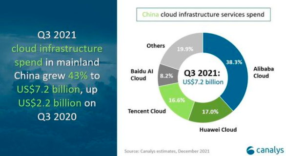 Canalys :2021年Q3中国云服务市场华为云和腾讯云市占率环比下降快讯