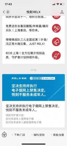 悦刻电子烟发布公告:终止一切网上销售和广告 拒绝服务未成年人快报