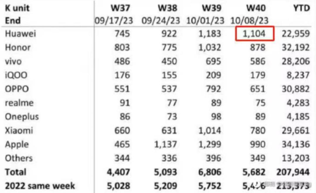 BCI数据显示,Mate 60系列发布后连续4周(W37-W40)的同比增速分别达到91%、46%、83%和95%,华为手机的销量份额也由Mate 60系列发布前的10%左右增长至W40(10月2日-10月8日)的19.4%,位居国内市场第一。
